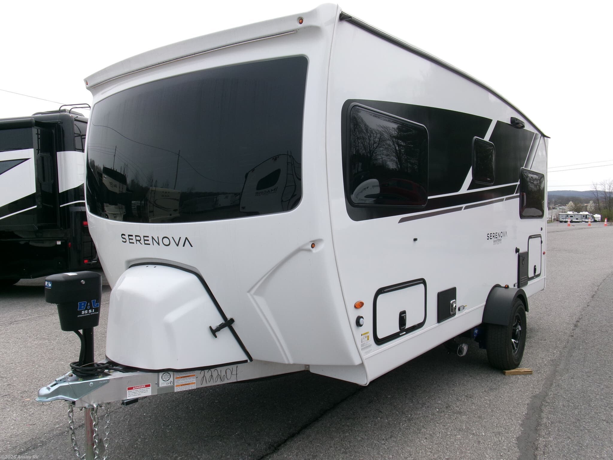 Serenova Gemini Package: BAL 5.1 Power Stabilizing System, Fiberglass Front Cap w/Automotive Windshield and Magnetic Cover, Installed Voyager Back Up Camera System, Waterproof Composite Floor Decking, Euro Door w/Integrated Privacy Window Shade, Entry Door Sliding Screen, Power Entry Step, Backlit Entry Handle, Armless Power Awning w/LED Lights, Accessory Hitch Reciever, Convenient Exterior Storage w/ Metal Slam Latch, Universal Docking Station, 2X 20lb Propane Tanks, Black Tank Flush, Dedicated Sewer Hose Carrier, 50 AMP Service