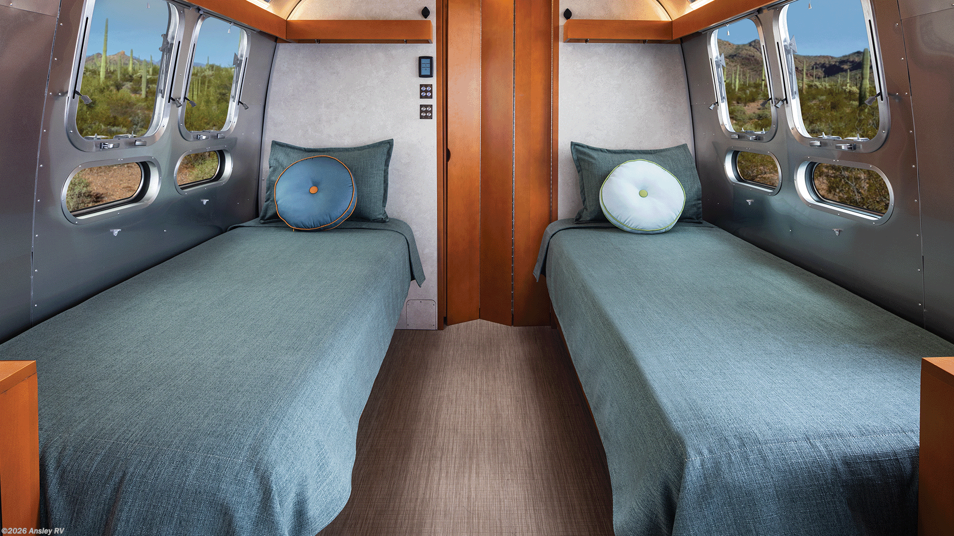 Thoughtfully designed with dual-purpose elegance woven throughout the trailer. Twin beds glide into a king, the dinette and desk fold seamlessly into custom cabinetry, and the sofa converts into a serene secondary place to sleep - each adapting seamlessly from day to night, work to rest.